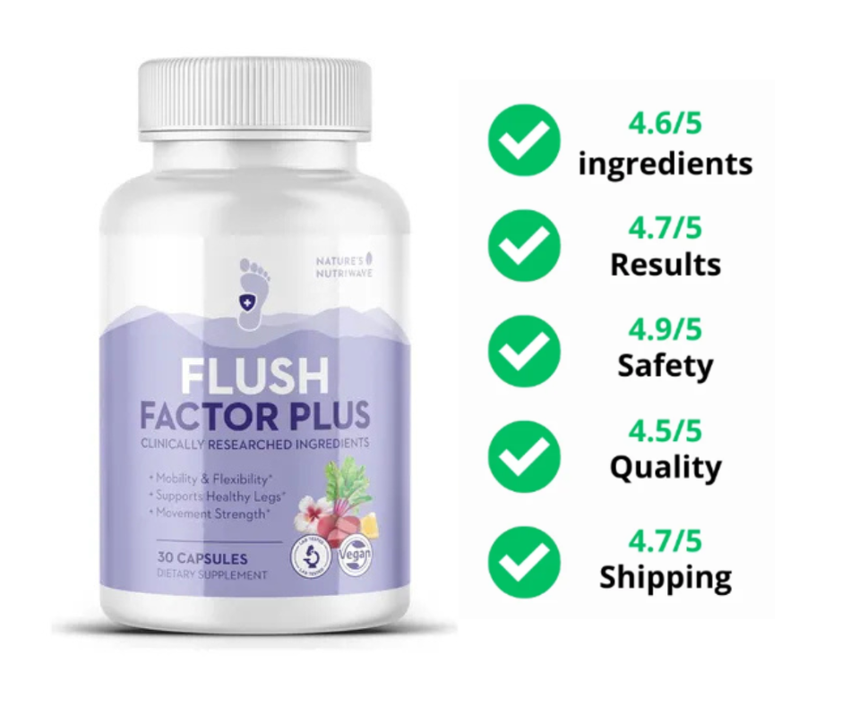 Flush Factor Plus is a plant-based dietary supplement formulated to support healthy blood pressure levels and promote better circulation.